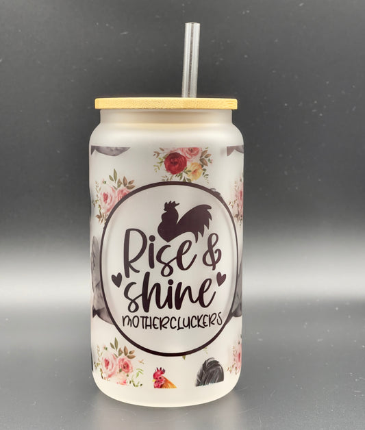 Rise & Shine Mothercluckers 16 oz. Frosted Glass Can, Tumbler